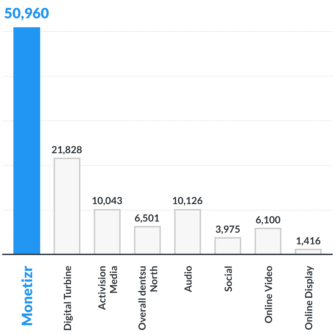 Attention – this is where mobile gaming and app advertising excels! This media channel is custom-designed to actually capture people's attention, instead of just showing ads in the background. So find out if Monetizr or Digital Turbine would get your brand the most attention.